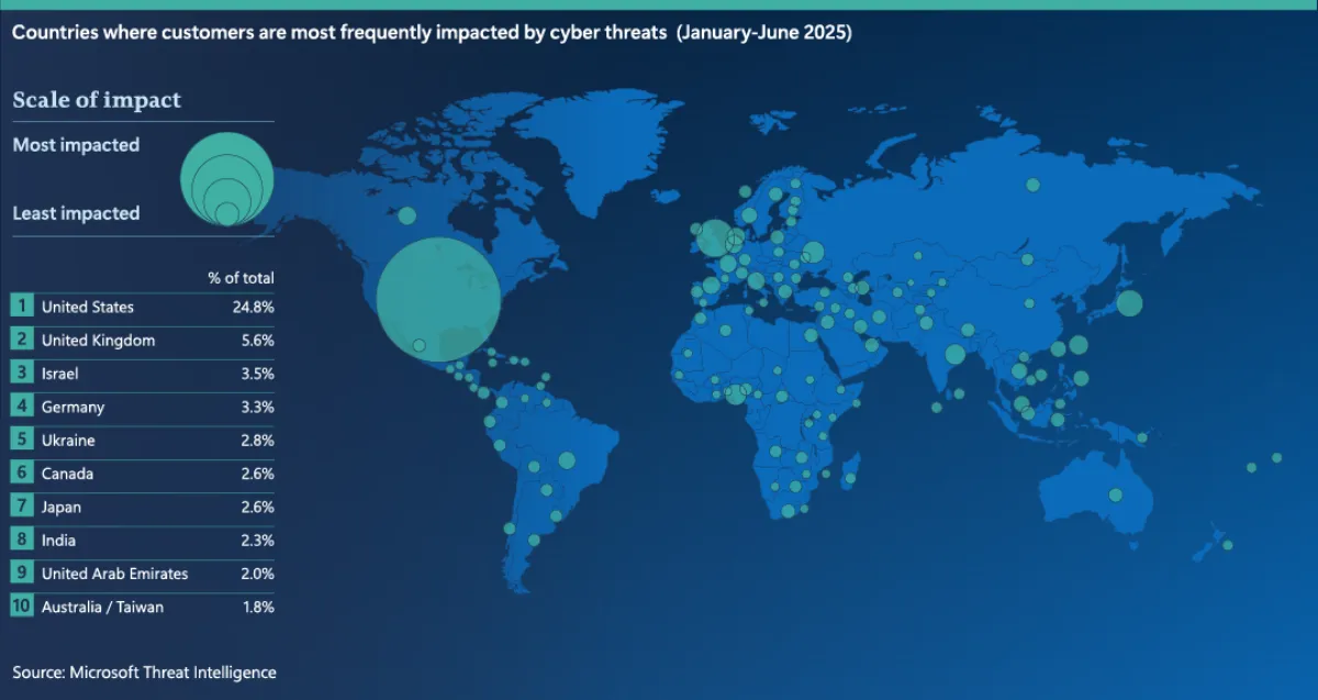 In this environment, organizational leaders must treat cybersecurity as a core strategic priority - not just an IT issue - and build resilience into their technology and operations from the ground up. In our sixth annual Microsoft Digital Defence Report, which covers trends from July 2024 through June 2025, we highlight that legacy security measures are no longer enough; we need modern defenses leveraging AI and strong collaboration across industries and governments to keep pace with the threat. For individuals, simple steps like using strong security tools - especially phishing-resistant multifactor authentication (MFA) - makes a big difference, as MFA can block over 99% of identity-based attacks. Below are some of the key findings.